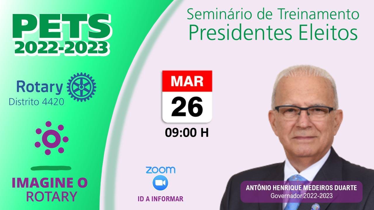 O seminário de treinamento de presidentes eleitos para 2022-2023 será realizado em 26/03/2022!