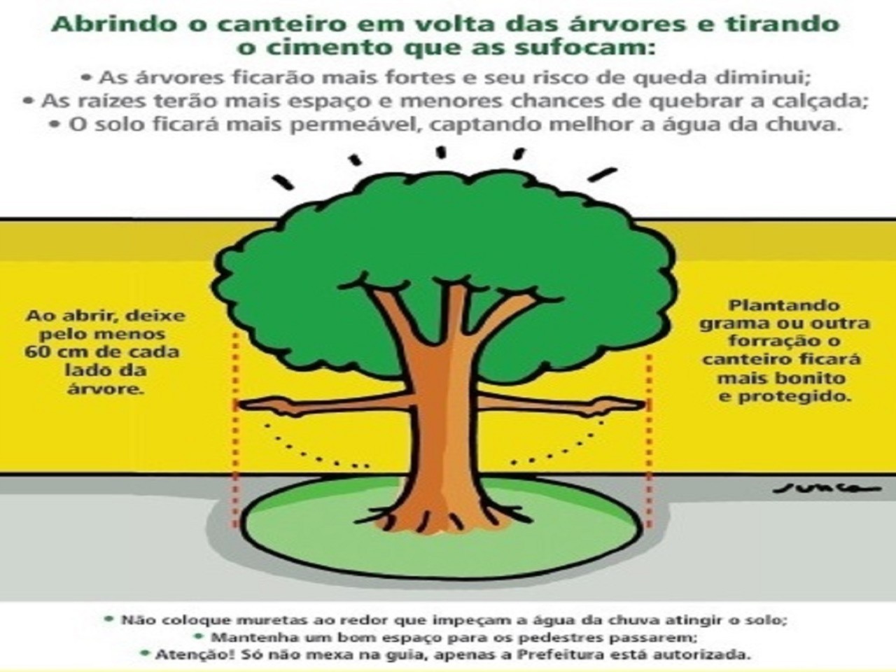 Segundo Claudia Visoni, jornalista, ambientalista e agricultora urbana, às árvores têm um papel de extrema importância no controle da poluição. Elas agem como filtros do material particulado. Uma pesquisa inglesa demonstrou que apenas uma árvore na calçada em frente a um imóvel é capaz de remover cerca de 50 da poeira em seu interior. É preciso disseminar esses conhecimentos para a população, desta forma evitaremos os maus tratos e o vandalismo contra às arvores, revela.
