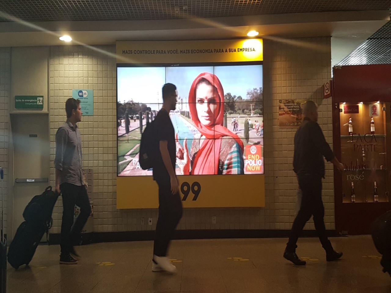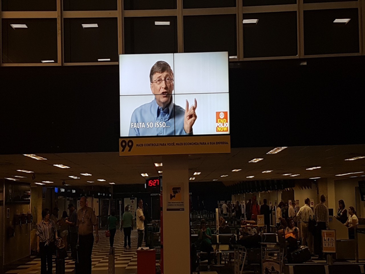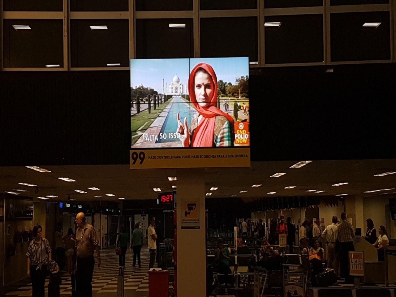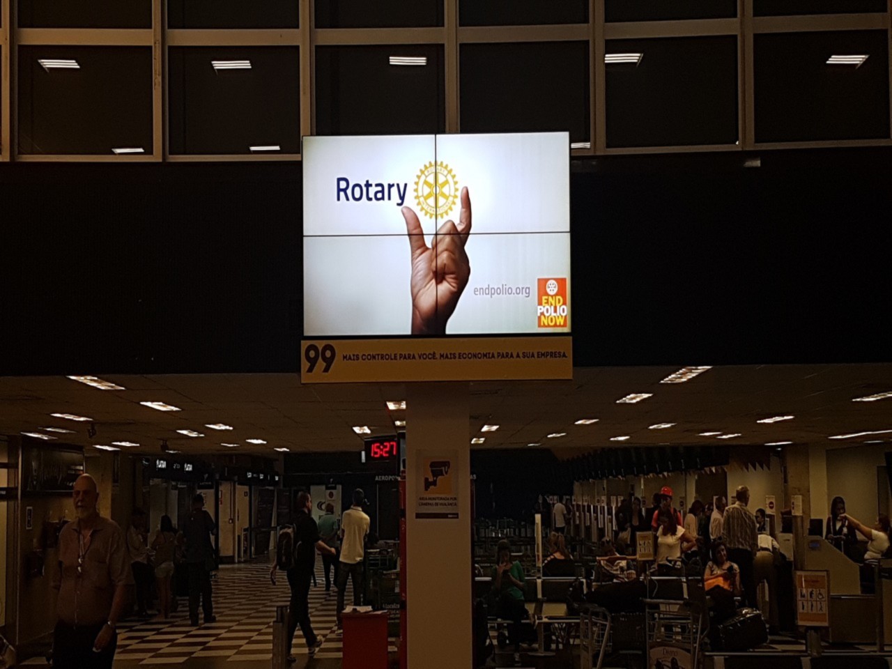 Desde o dia 16 de outubro, o Rotary Club São Paulo Sul, por intermédio do companheiro Marcos Totoli, em parceria com o Grupo Kallas, pioneiro em mídia aeroportuária e mais de 37 anos de atuação, está veiculando nos principais aeroportos do país, nas áreas de embarque e desembarque, em seus monitores e painéis videowall, um vídeo que simboliza a campanha End Polio Now. Os terminais comtemplados são: Congonhas/SP, Santos Dumont/RJ, Recife/PE, Fortaleza/CE, Salvador/BA, Porto Alegre/RS e Curitiba/PR. Até o dia 31/10 os passageiros que circularem por esses espaços serão informados sobre a campanha.