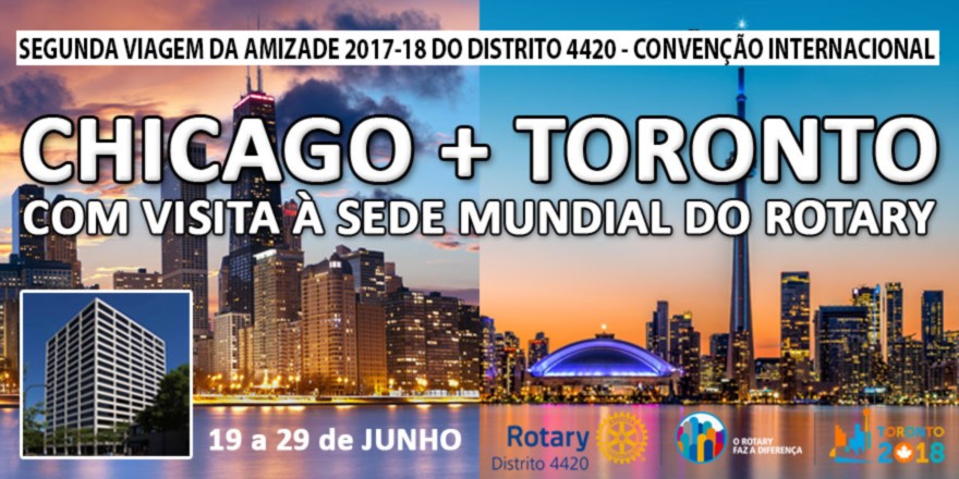 Esta nova viagem levará os rotarianos a dois destinos imperdíveis para todo rotariano: a sede mundial do Rotary, na cidade de Evanston, próxima à Chicago, nos EUA, e à Convenção Internacional em Toronto, no Canadá.