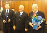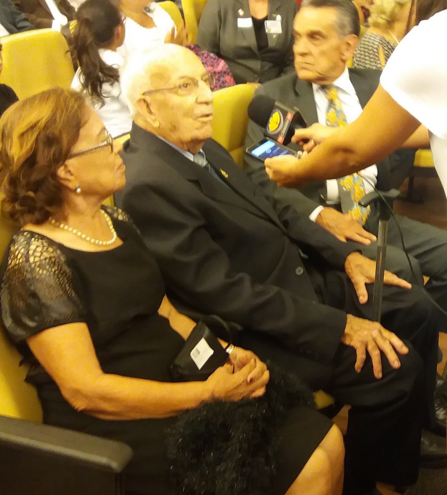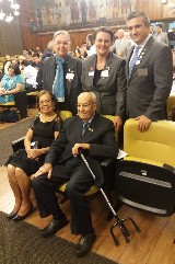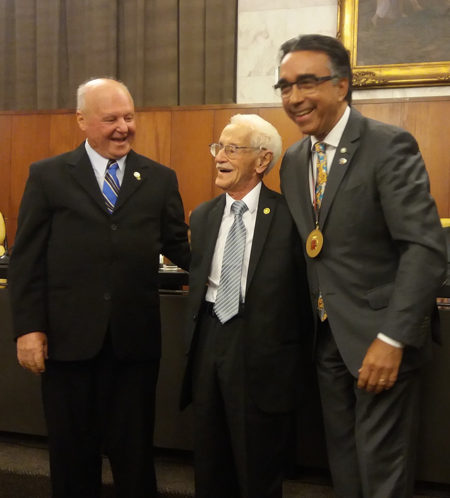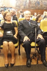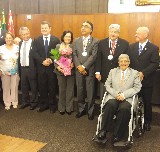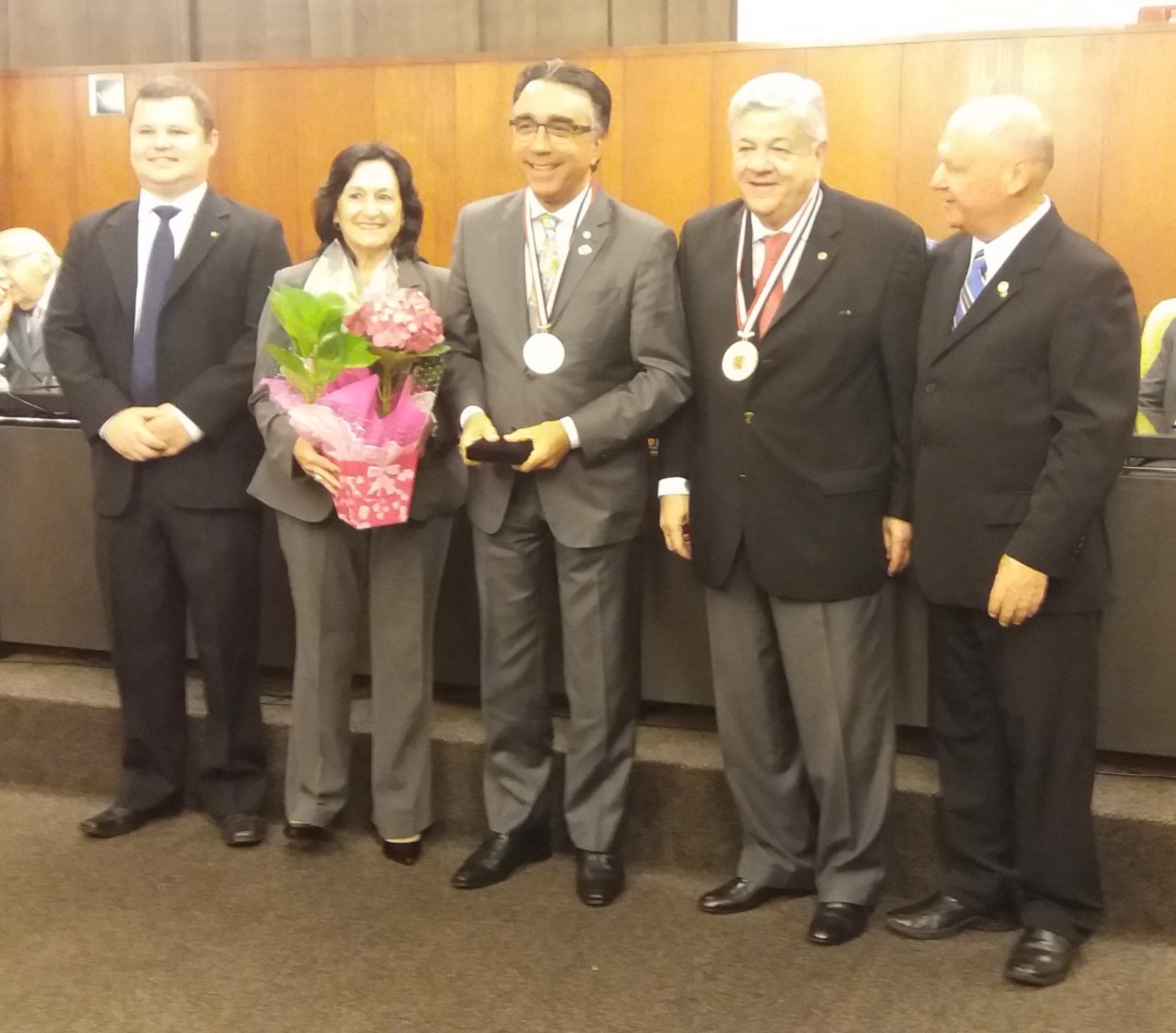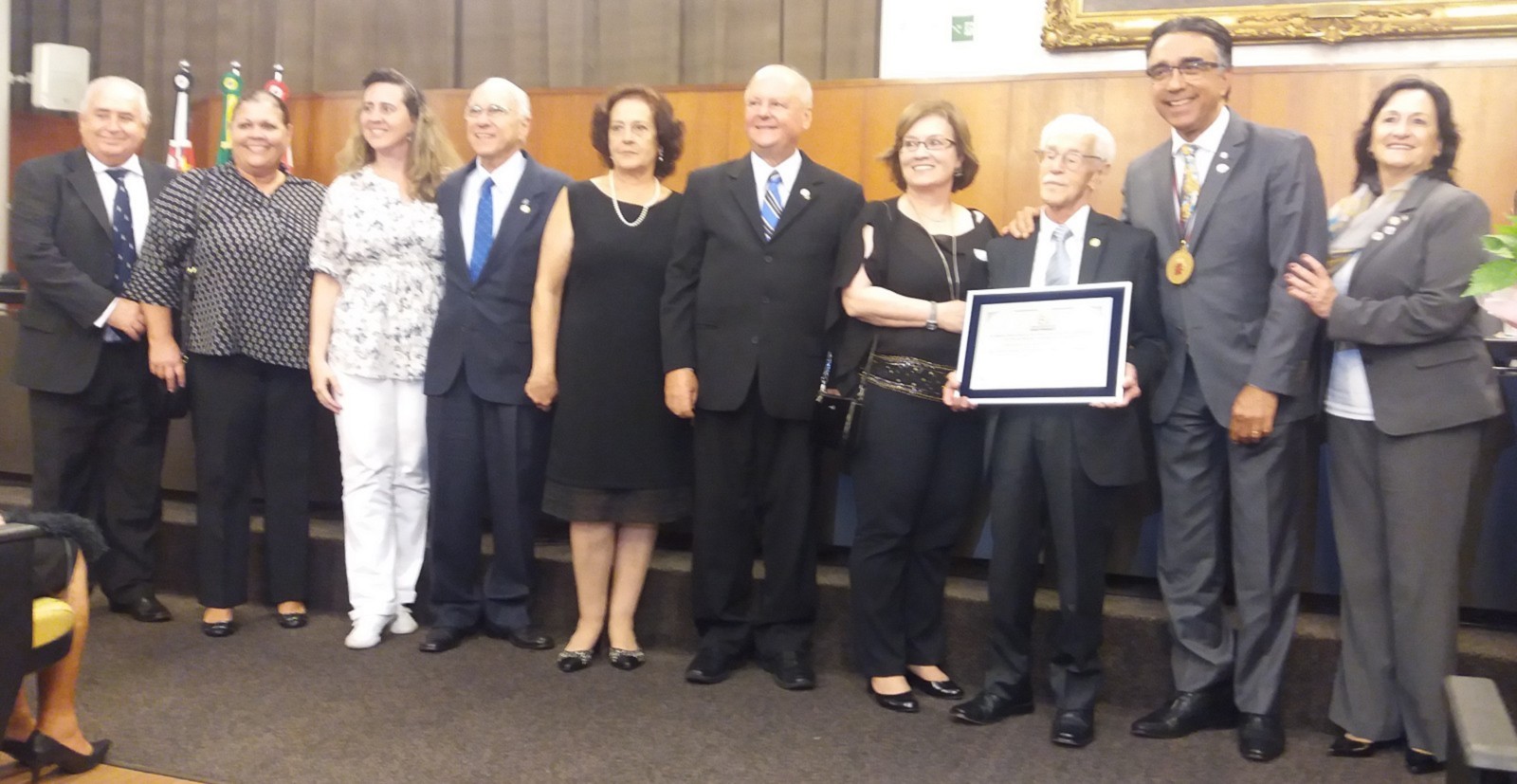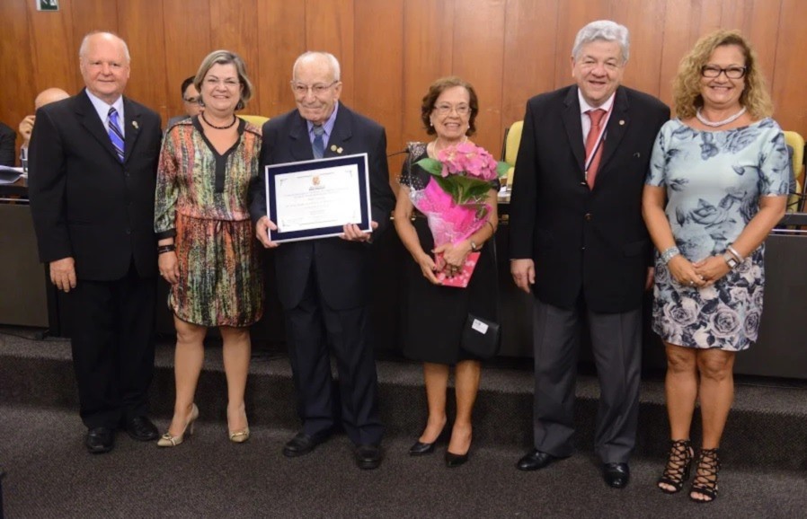 Indicado pelo Distrito 4420, o companheiro e sócio fundador do Rotary Club de Cubatão, senhor Mário Canelas, aos 93 anos, foi condecorado por sua atuação em 47 anos como rotariano. Para mim, essa é uma data muito importante, uma lembrança da Câmara Municipal que eu não esperava receber. Sou grato a esta casa e aos companheiros do meu clube, declara emocionado.