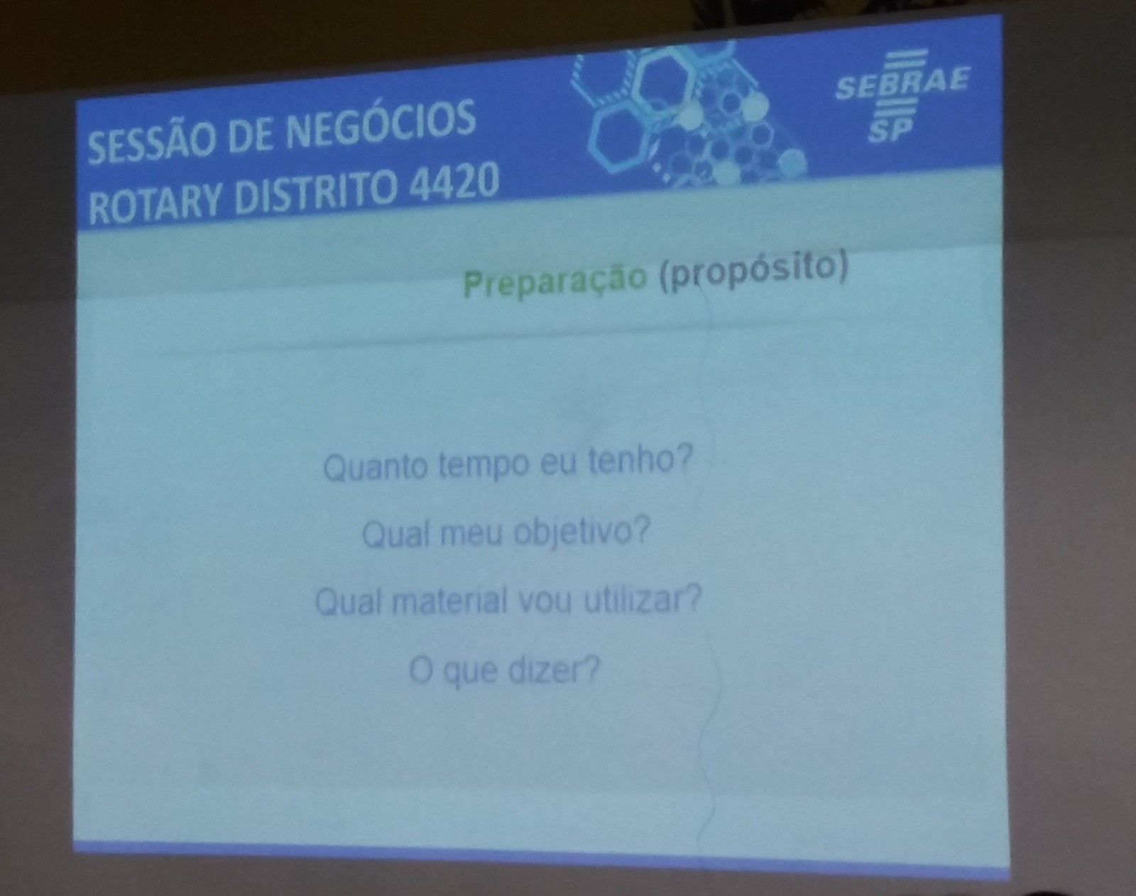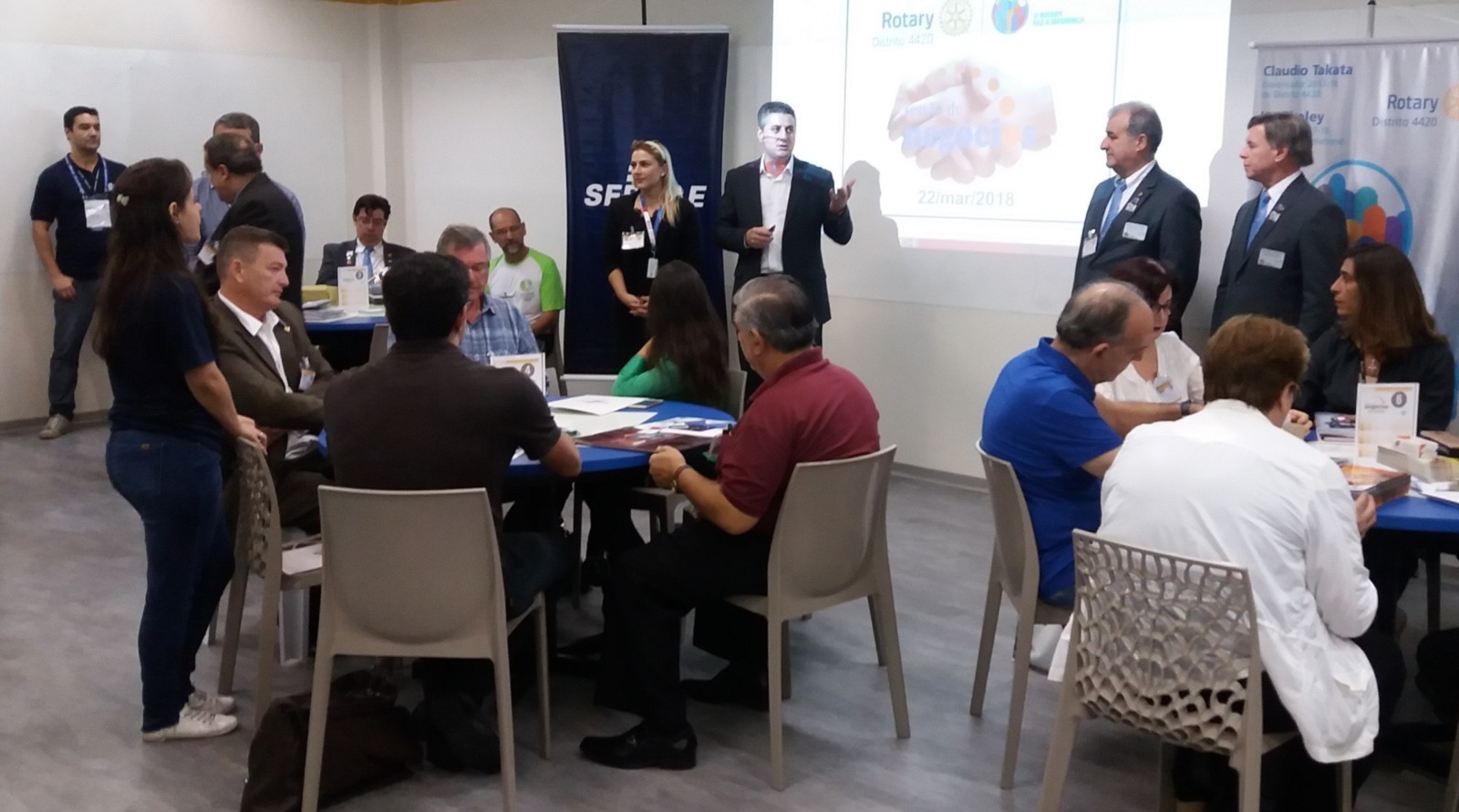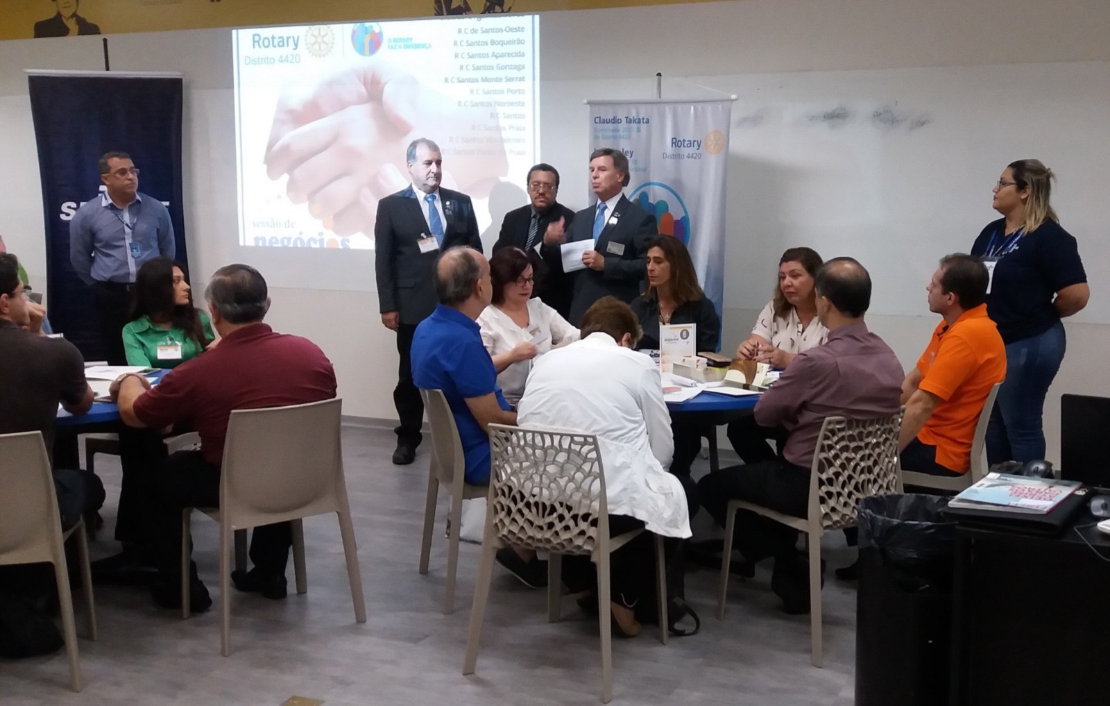 Marcos Rosa, gerente do SEBRAE, unidade de Santos, afirma que os eventos em parceria com o Rotary sempre tem um número positivo de inscritos. Temos quatro rodadas ao ano ministradas pelo SEBRAE, percebemos que no Rotary, o número de participantes é maior.