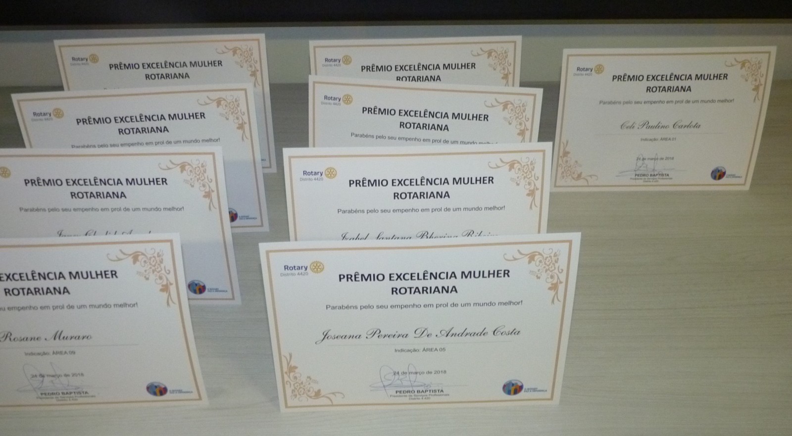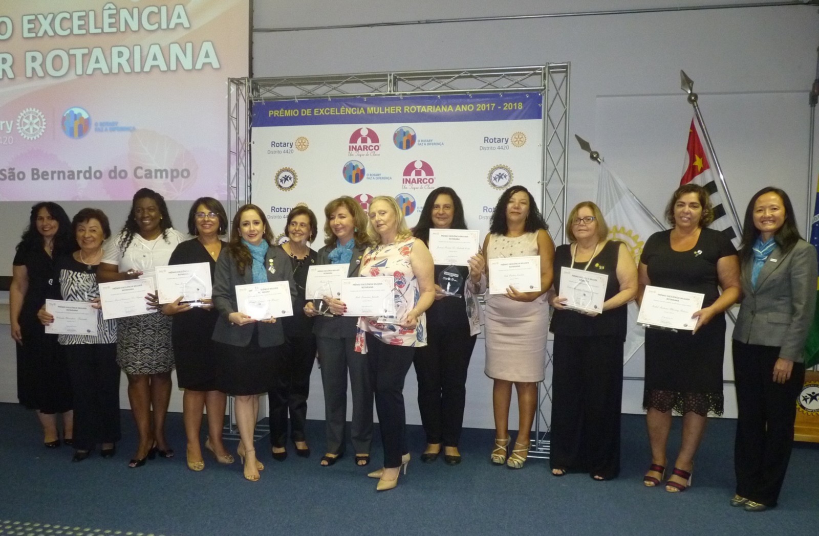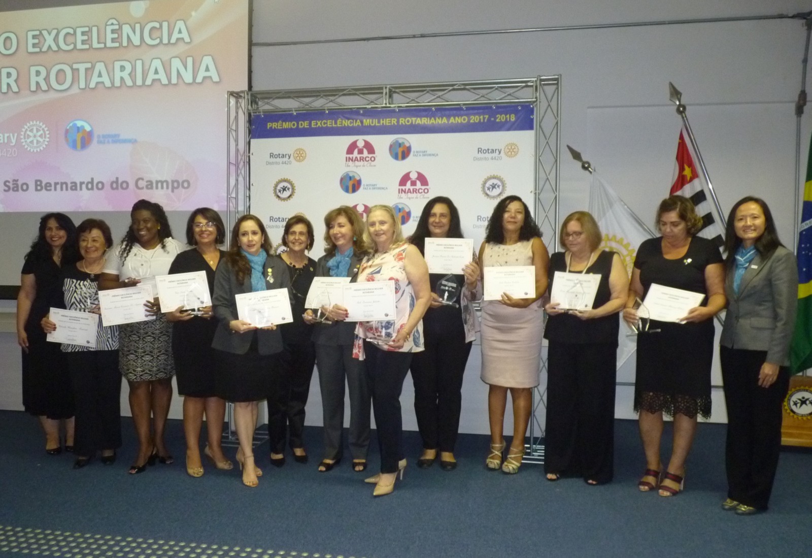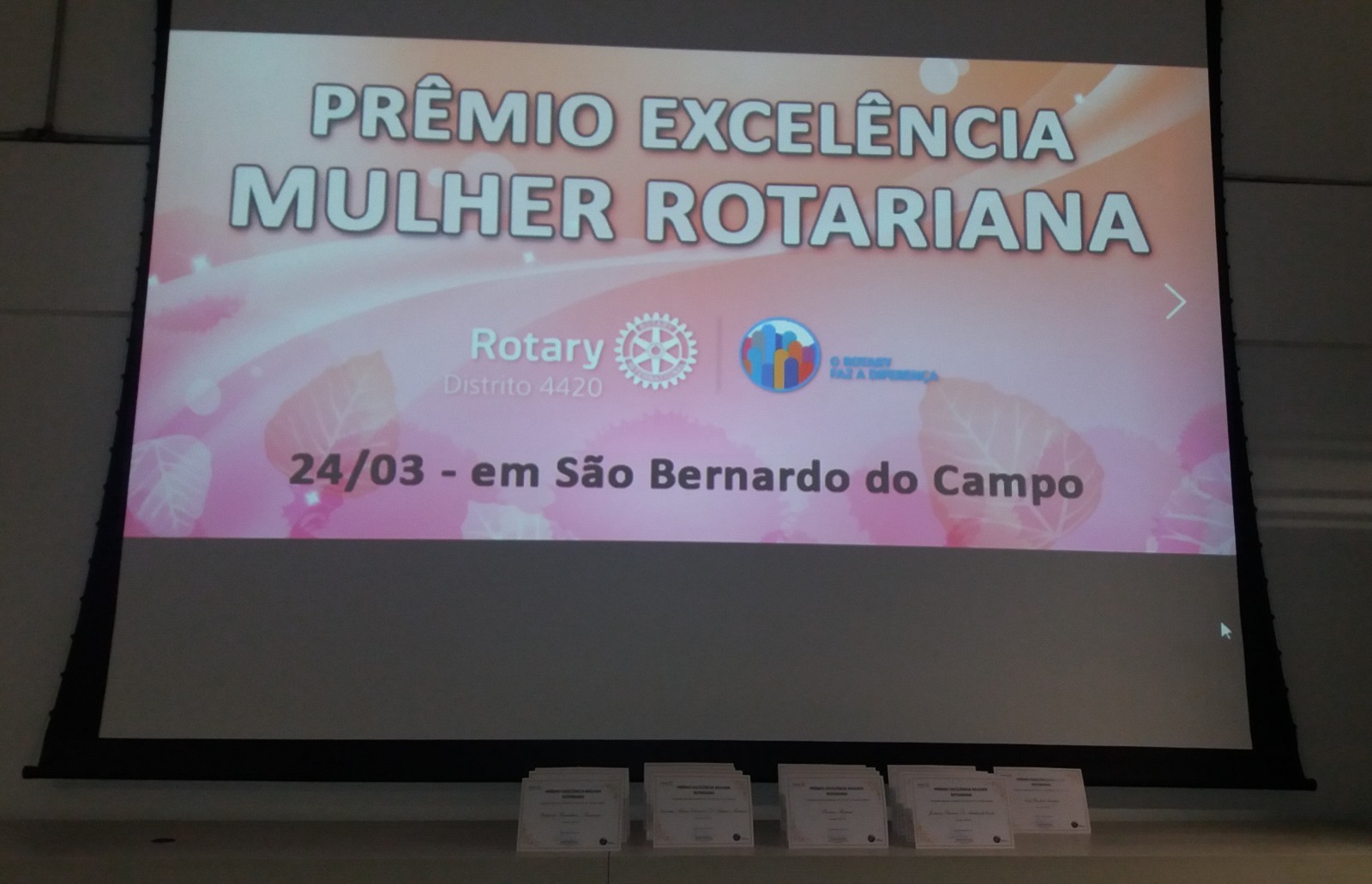 Na noite do último sábado (24), o Distrito 4420 realizou o 1º Prêmio Excelência Mulher Rotariana. O encontro aconteceu no CAMP SBC (Centro de Formação e Integração Social) em São Bernardo do Campo. A premiação encerra as comemorações em homenagem ao Dia Internacional da Mulher no Distrito. Tem como objetivo reconhecer mulheres que se destacam em suas atividades, como forma de valorização de seu trabalho e responsabilidade social.
