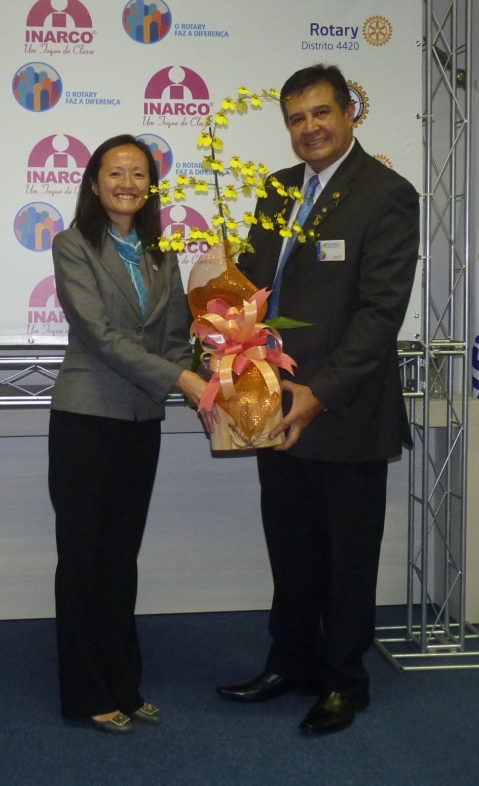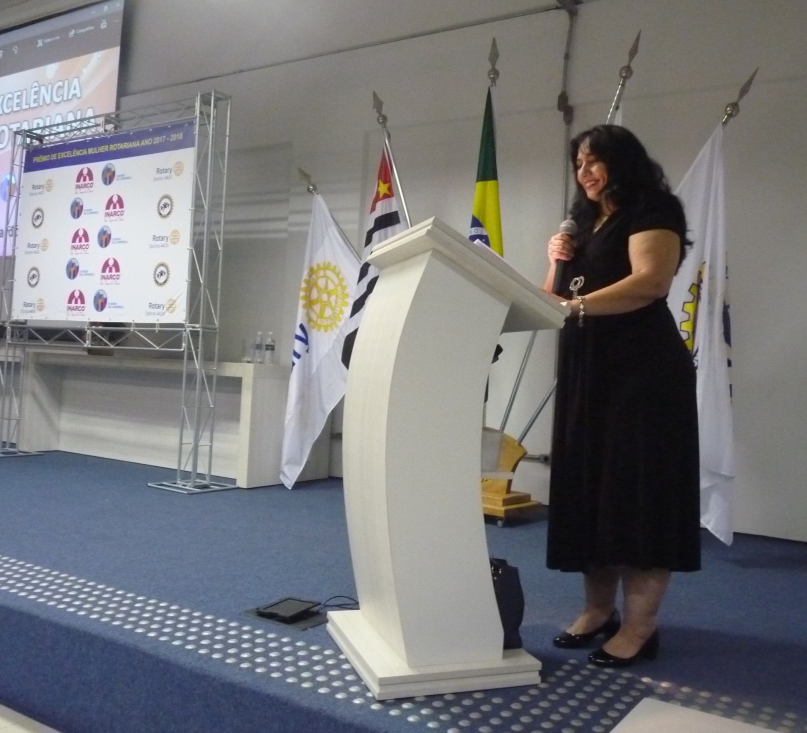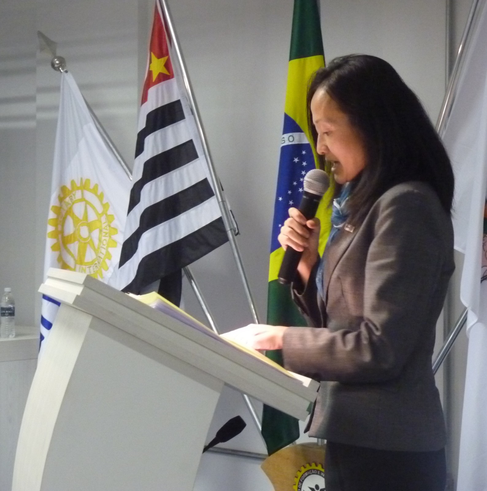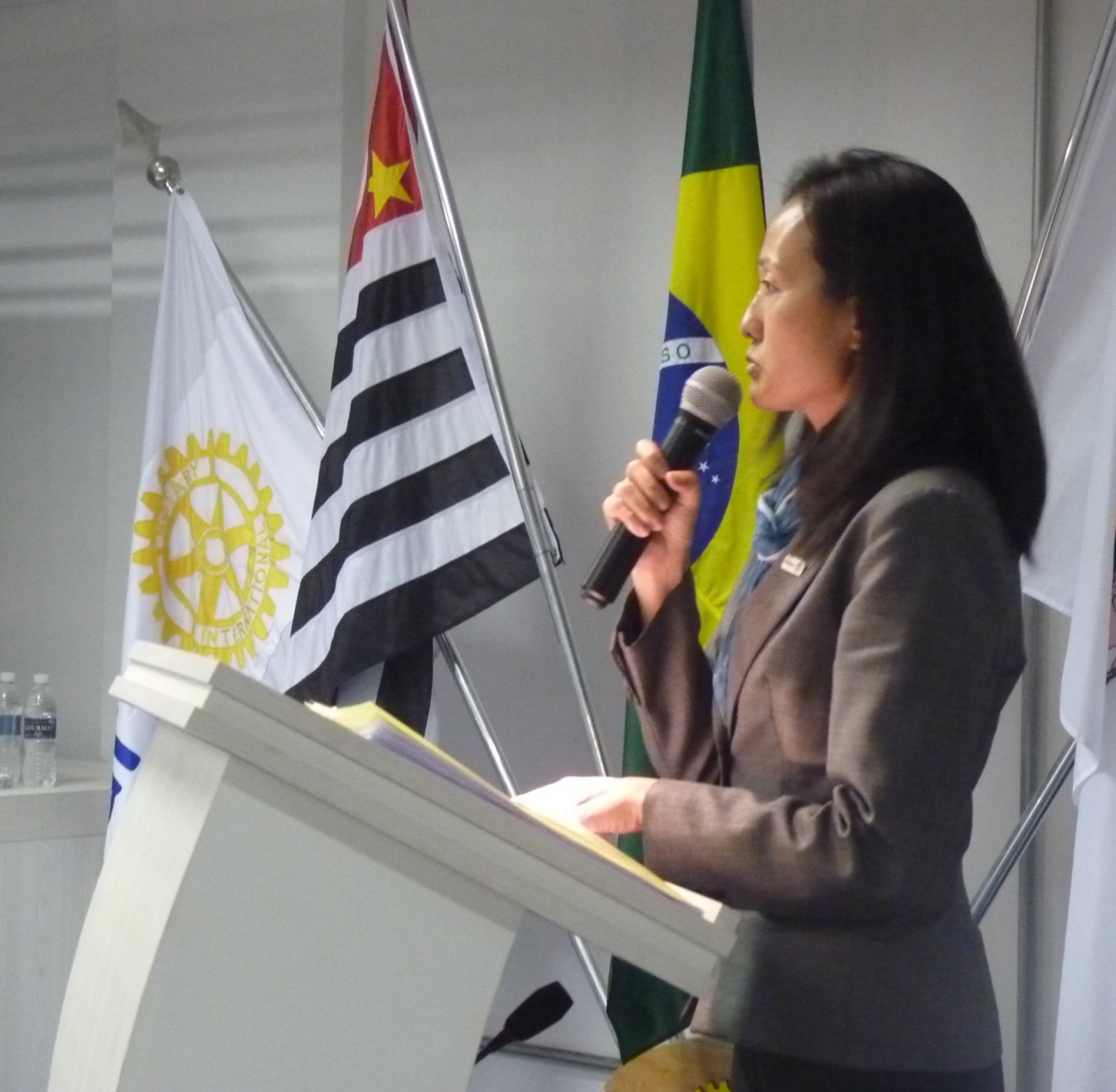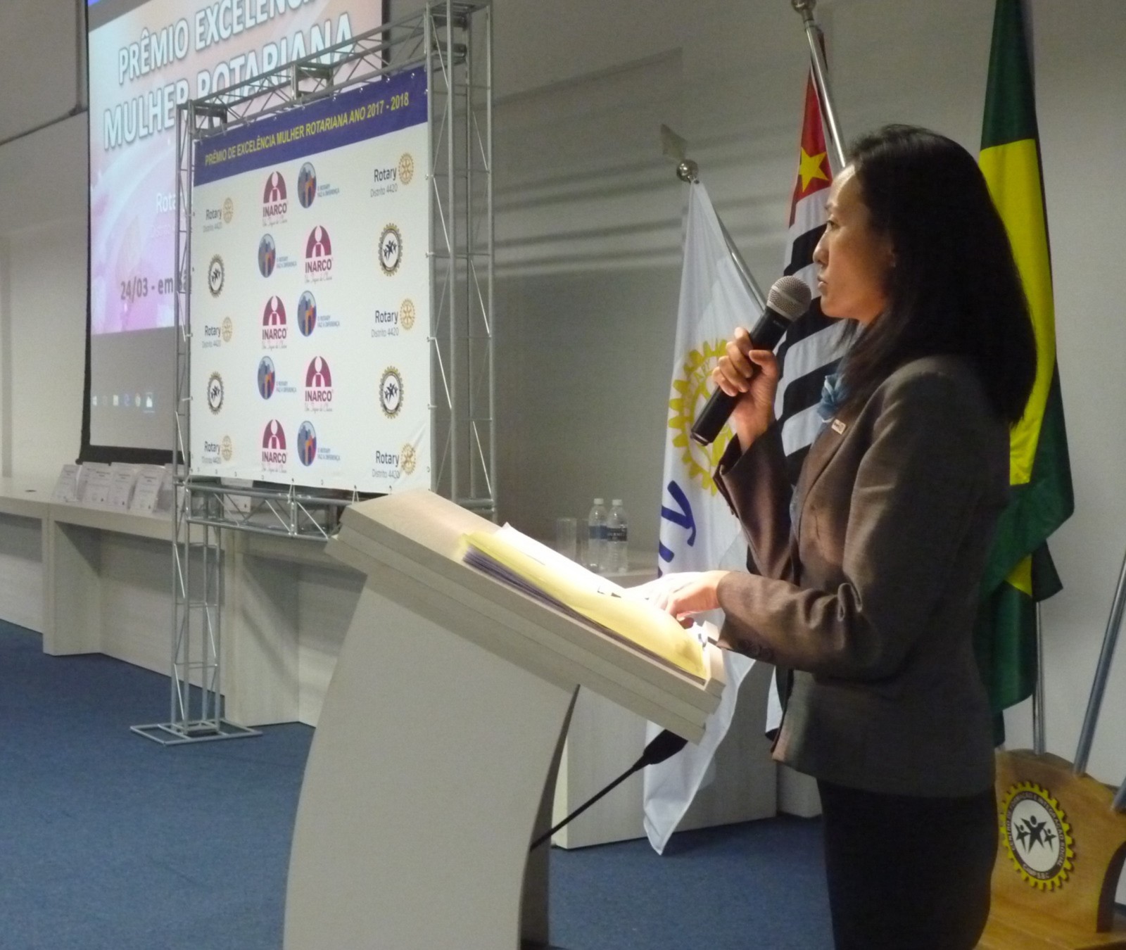 Representando Claudio Takata, governador do Distrito 4420, Maria Takata iniciou à abertura do evento com um belo discurso. Ela mencionou a história da mulher rotariana. No Conselho de Legislação de 1972, um Rotary Club americano propôs a admissão de mulheres no Rotary à medida que elas foram adquirindo mais destaque em suas profissões. Em 1987, o Conselho decidiu por votação, que as mulheres poderiam fazer parte do quadro associativo de qualquer Rotary Club no mundo. Hoje somos mais de 200.000 rotarianas. No Distrito 4420 somos 511 mulheres, equivalente a 27 dos associados, onde a média mundial é de 22. Somos uma grande força, rotarianas unidas, trabalhando juntas para fazer à diferença, declara.
