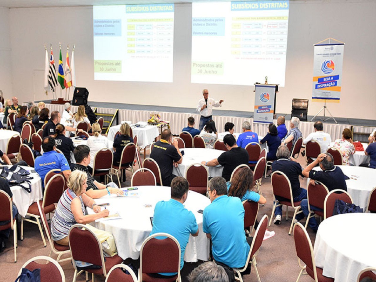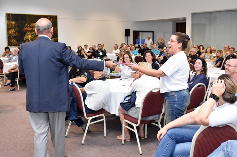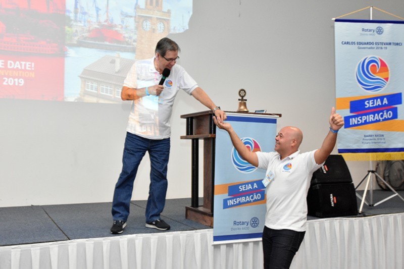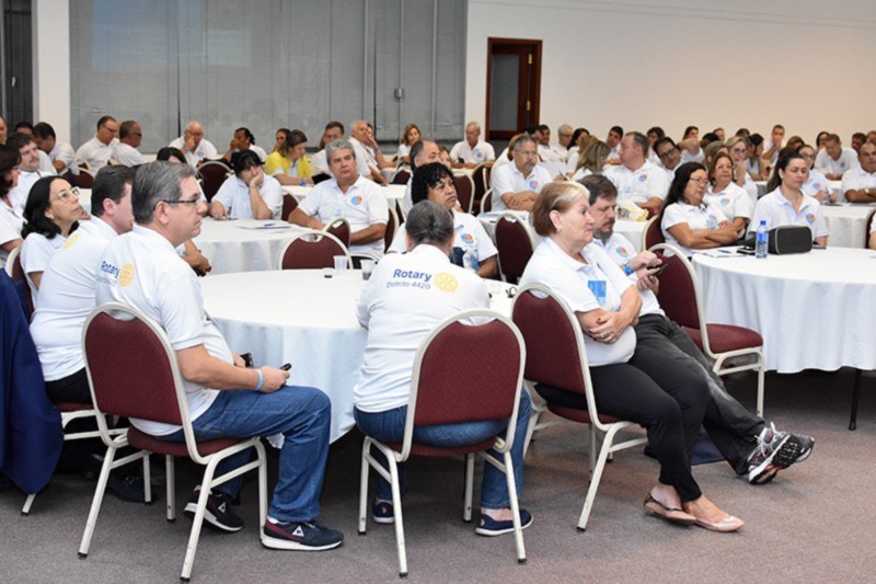 Cerca de 170 pessoas participaram do PETS. Torci apresentou a estes líderes o Seja a Inspiração, lema mundial do Rotary para 2018-2019. Ele também deu detalhes da menção presidencial de Barry Rassin, que será o presidente do RI neste mesmo período. O Seja a Inspiração está totalmente alinhado à filosofia de trabalho que aplicamos junto à Equipe Distrital. Desenvolvemos nos últimos meses um forte apelo pelo encantamento, baseado no jeito Disney de encantar seus clientes. O Distrito 4420 é um casso de sucesso em Rotary, mas como poderíamos reter nossos associados pela satisfação total? Sabemos convidar novos rotarianos, mas precisamos melhorar o foco em sua retenção. Vamos fidelizar estes convidados.