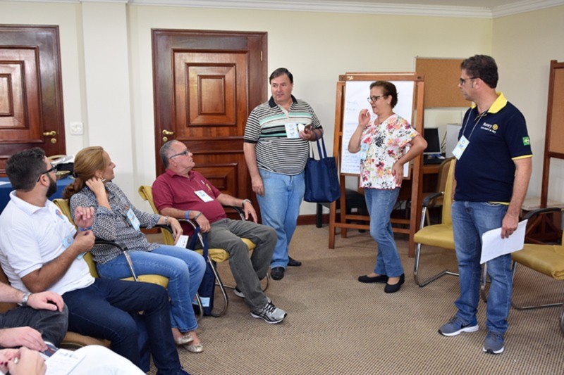 Foi neste clima de encantamento, envolvimento e inspiração que ele recepcionou governadores assistentes, presidentes eleitos e cônjuges que vão liderar os clubes do Distrito 4420 a partir de 1º de julho. O PETS tem entre seus objetivos motivar o exercício da liderança para que ela seja praticada durante a gestão que se aproxima. Trouxemos as ênfases reveladas na Assembleia Internacional do Rotary, em San Diego (EUA), durante o treinamento dos governadores de 219 países. Também mostramos um pouco das metas, mas o principal trabalho foi motivacional. Despertamos o desejo de produzir e realizar nos rotarianos. Eles querem assumir logo seus clubes e partir para ação. Nossa missão será encantar, desejou.