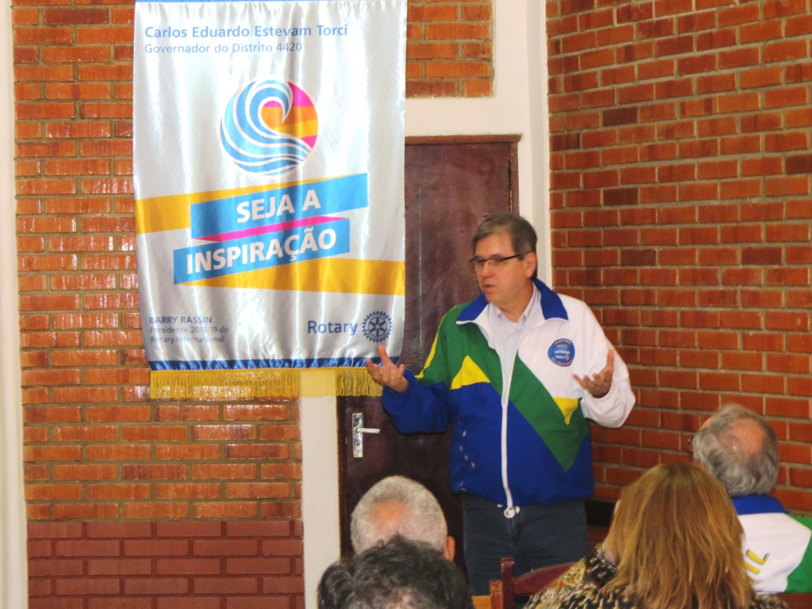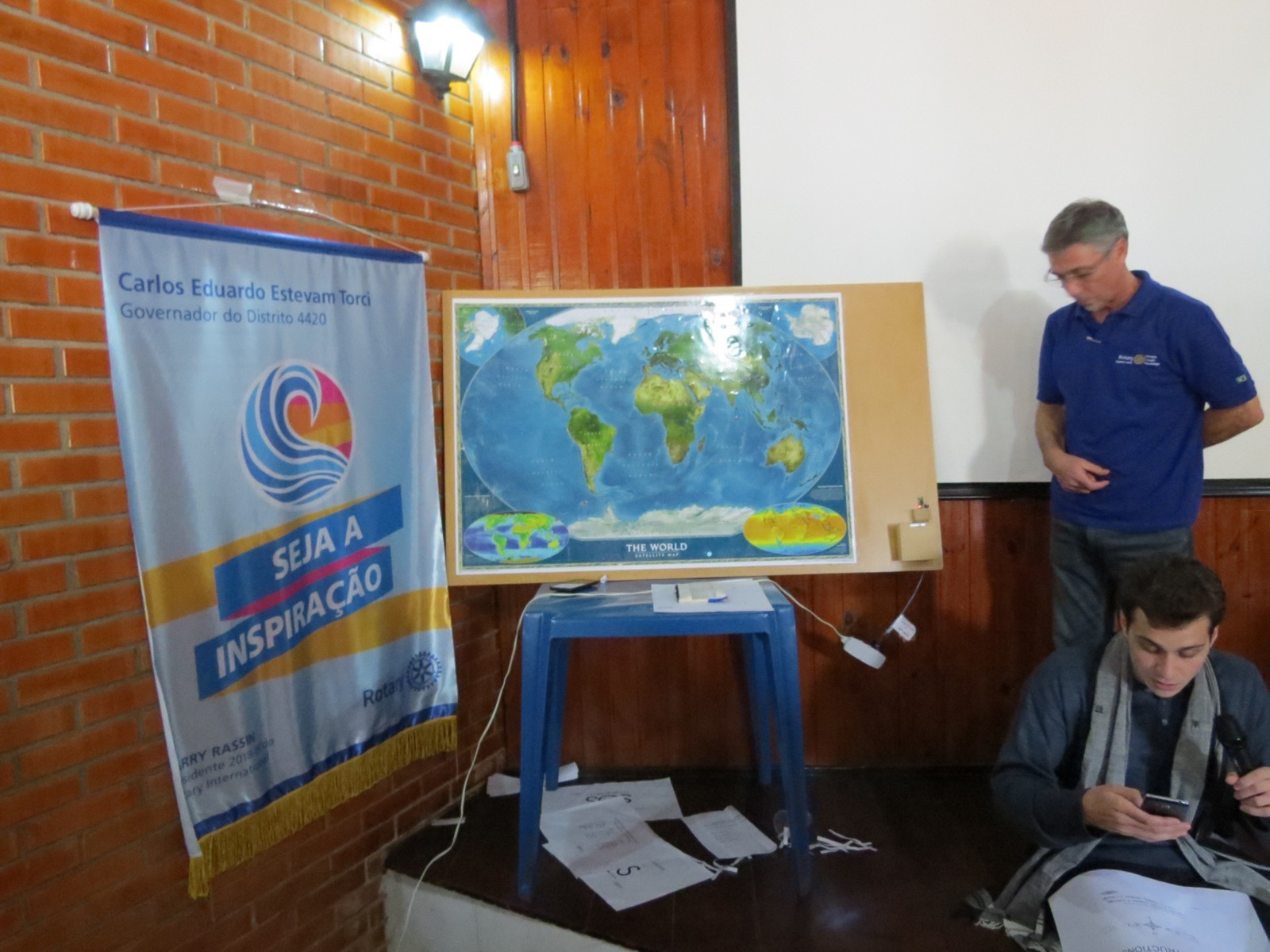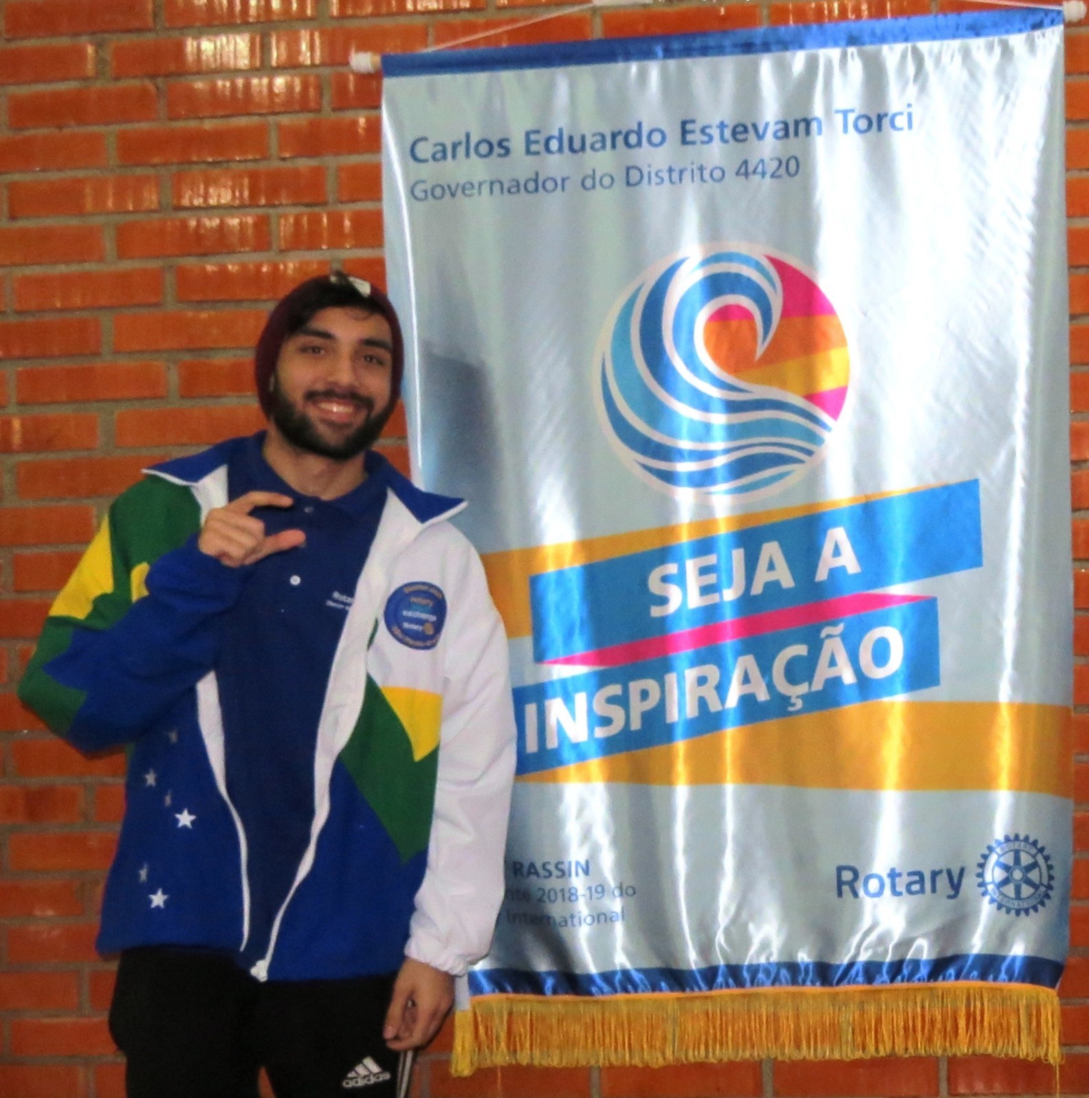 No Domingo, dia 19, os inbounds ouviram a mensagem do Governador Inspirador do Distrito 4420, Carlos Torci, que lhes deu as boas vindas e afirmou que vivenciarão o melhor ano de suas vidas em nosso país. Na sequencia, participaram de uma nova dinâmica de competição em grupo, sob a coordenação da psicóloga e da educadora da Comissão do YEP, também mostrando habilidades e conhecimentos sobre figuras de diversos objetos, com o objetivo de identificá-los em português. Na sequencia, receberam cada um, individualmente, um balão, sopraram para inflá-lo e ao final, como surpresa, tiveram que defender seus balões e, ao mesmo tempo, furar e estourar os balões dos outros competidores, demonstrando agilidade e destreza. Em seguida, dirigiram-se ao parque aquático, onde tiraram a fotos oficial exibindo a bandeira de seus respectivos países, junto ao Governador Carlos Torci.