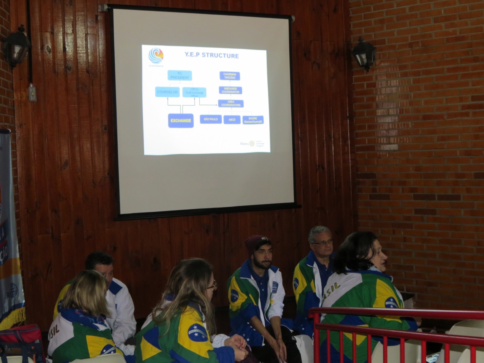 Ao chegarem ao local, na sexta feira, dia 17, os inbounds (como são chamados os intercambistas que escolheram nosso país para vivenciarem o melhor ano de suas vidas), receberam da Comissão do YEP uma camiseta e um blusão estilizados com ícones que remontam ao Brasil e uma apostila, elaborada pela Comissão, constando as principais Regras do Programa de intercâmbio em nosso Distrito.