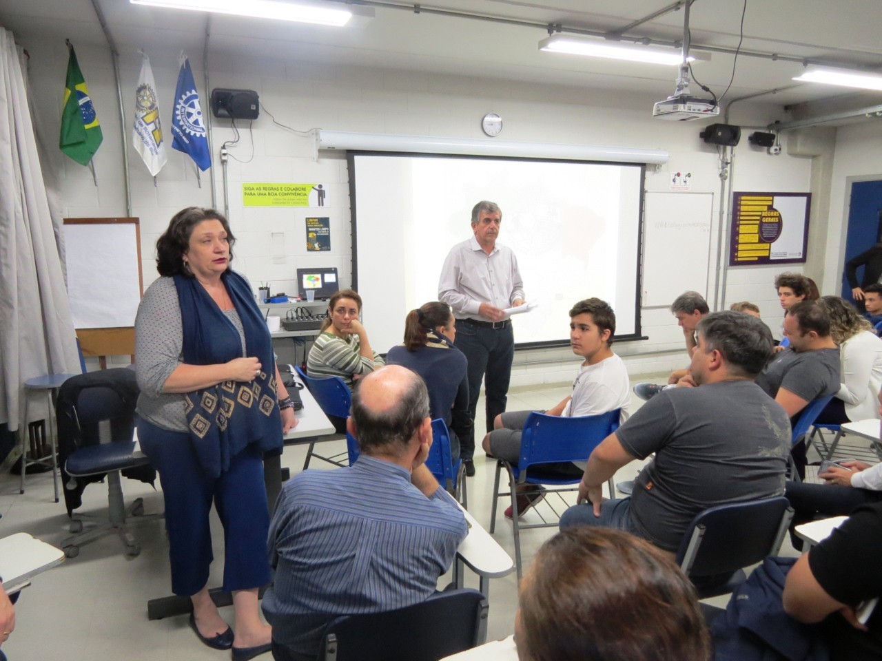 Os companheiros Marcos Nóbrega (mediador e apresentador), Jose Luiz Cabrino (apoio) e Ida Brandani (suporte), fizeram a apresentação do programa de intercâmbio de jovens de longa duração (YEP), aos jovens interessados em obter maiores informações sobre esse maravilhoso programa, acompanhados de seus pais.