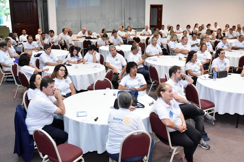Cerca de 170 pessoas participaram do PETS. Torci apresentou a estes líderes o Seja a Inspiração, lema mundial do Rotary para 2018-2019. Ele também deu detalhes da menção presidencial de Barry Rassin, que será o presidente do RI neste mesmo período. O Seja a Inspiração está totalmente alinhado à filosofia de trabalho que aplicamos junto à Equipe Distrital. Desenvolvemos nos últimos meses um forte apelo pelo encantamento, baseado no jeito Disney de encantar seus clientes. O Distrito 4420 é um casso de sucesso em Rotary, mas como poderíamos reter nossos associados pela satisfação total? Sabemos convidar novos rotarianos, mas precisamos melhorar o foco em sua retenção. Vamos fidelizar estes convidados.