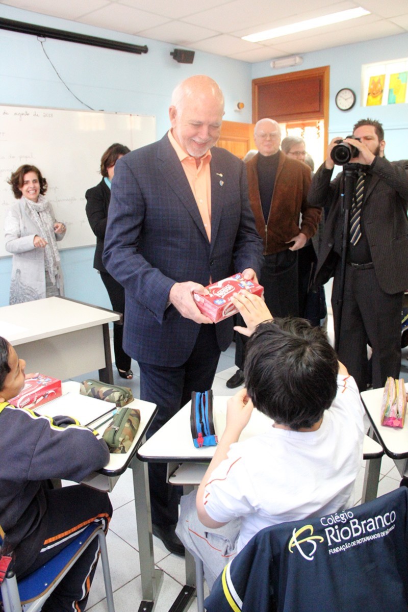 Na manhã da terça-feira de 28 de agosto, eles visitaram o complexo do Colégio Rio Branco, na unidade Granja Viana/SP. Juntos, eles conheceram o Centro de Educação para Surdos e o Centro Profissionalizante Rio Branco, espalhados numa área de 88 mil metros quadrados com outros segmentos de ensino multidisciplinar. A visita foi acompanhada pelos governadores Carlos Torci (4420), Edson Cunha Borcato (4610), Dante Amato (4430), Nahid Chicane, Presidente da Fundação dos Rotarianos de São Paulo, José Alfredo Pretoni, Ex-diretor do Rotary International, entre outras lideranças rotárias distritais. Veja as fotos abaixo.