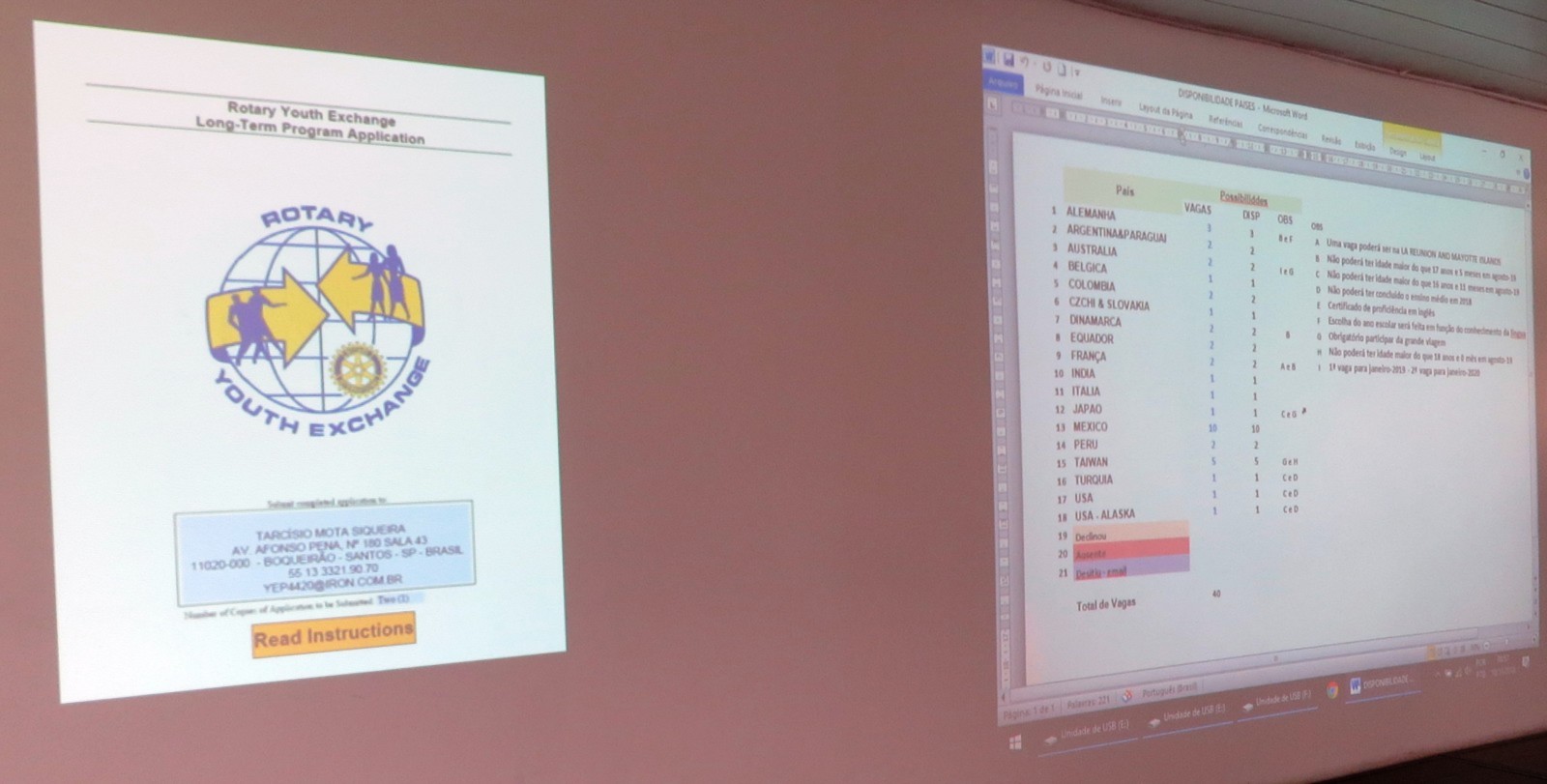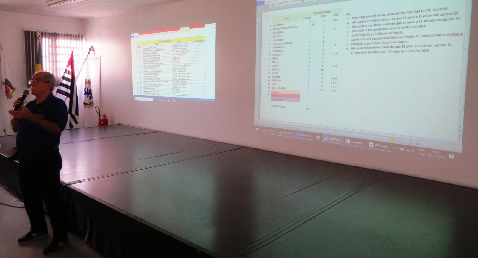 A Comissão do YEP ? Distrito 4420 promoveu na manhã de sábado, dia 10 de novembro de 2018, no auditório do CAMP de São Bernardo do Campo, a tão esperada reunião para escolha de países para os jovens 2019-2020, que estarão viajando e agosto de 2019.