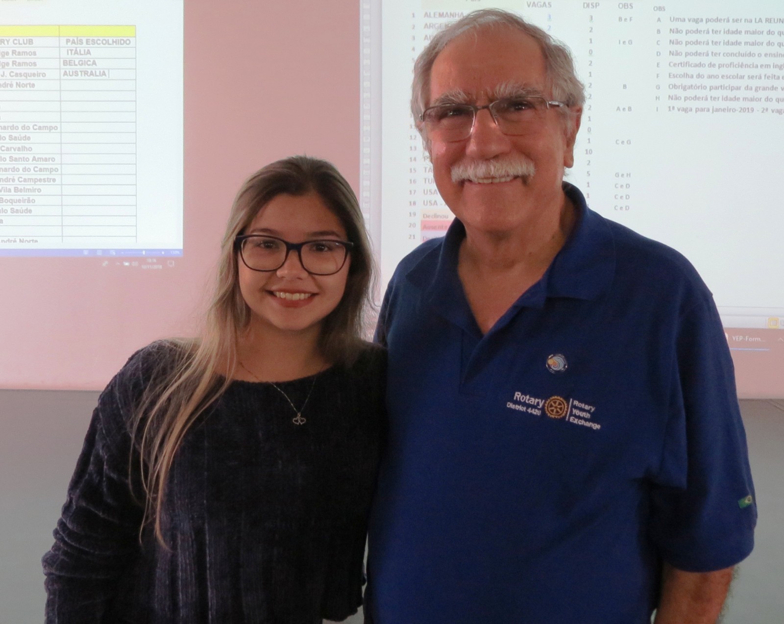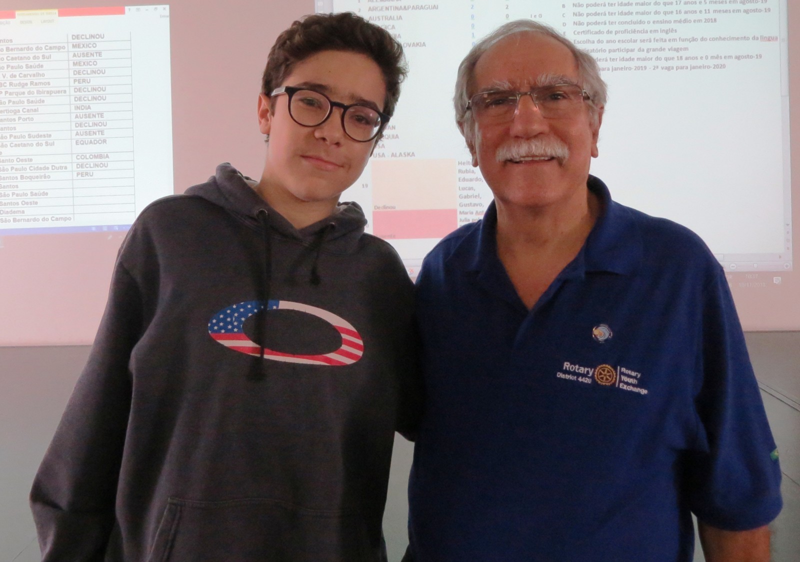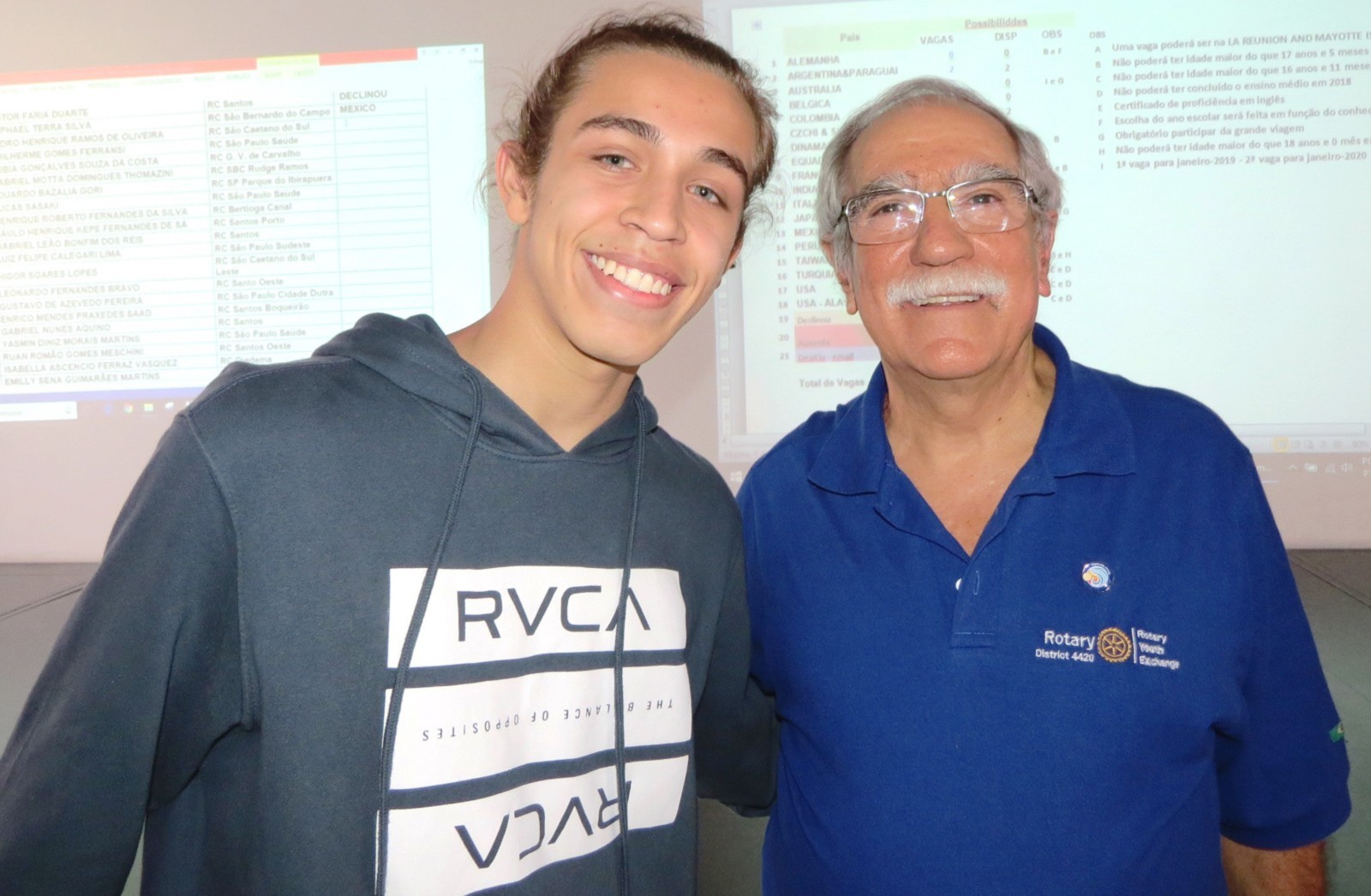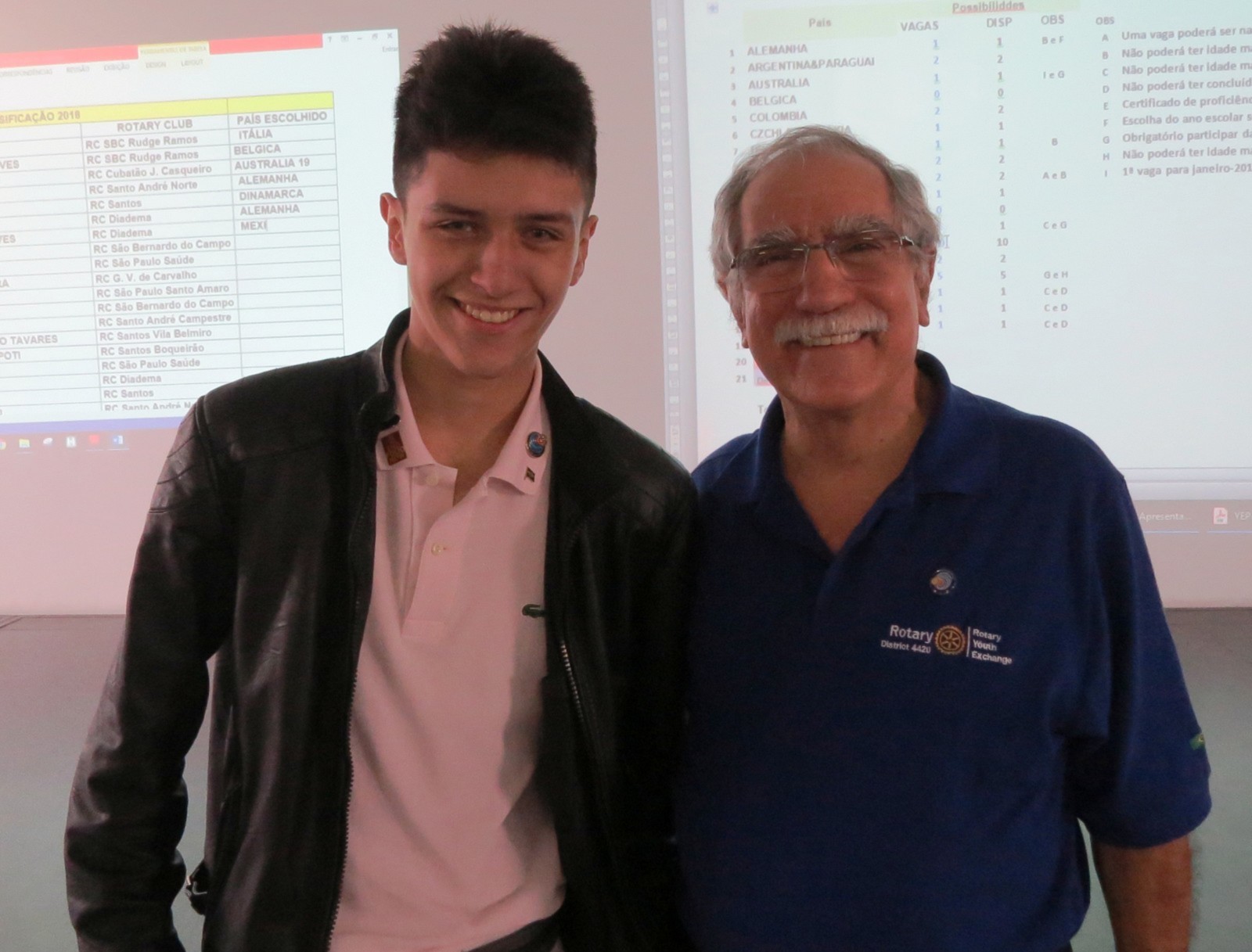 A primeira classificada no procedimento classificatório, foi a jovem Nicole Lima de Aguiar, do RC São Bernardo do Campo Rudge Ramos, que escolheu a ITÁLIA; o segundo, Gabriel Henrique Mendes Alves, do RC São Bernardo do Campo Rudge Ramos, BÉLGICA; a terceira, Marina Cova Lacerda, do RC Cubatão Jardim Casqueiro, AUSTRÁLIA; o quarto, Rafael Barbosa da Silva, do RC Santo André Norte, ALEMANHA; ao quinta, Ana Luiza Presa dos Reis, do RC Santos,DINAMARCA; a sexta, Beatriz Avelino da Silva, do RC Diadema, ALEMANHA, o sétimo, Leonardo Ivamoto Gonçalves, do RC Diadema, MÉXICO; o oitavo, Leandro Lélis Kermentz, do RC São Bernardo do Campo, ALEMANHA, a nona, Isadora Pressoto, do RC São Paulo Saúde, DINAMARCA; a décima, Barbara de Oliveira Seabra, do RC Guarujá Vicente de Carvalho, AUSTRÁLIA; a décima primeira, Júlia Medeiros Santos, do RC São Paulo Santo Amaro, França; Diogo Godoi Lewczuk, do RC São Bernardo do Campo, EUA e assim por diante, os demais 25 jovens foram escolhendo as demais vagas, Taiwan, Rep. Tcheca, México, Japão, Turquia, Peru, Índia, Equador e Colômbia.