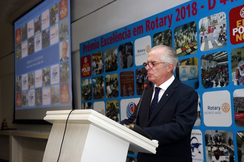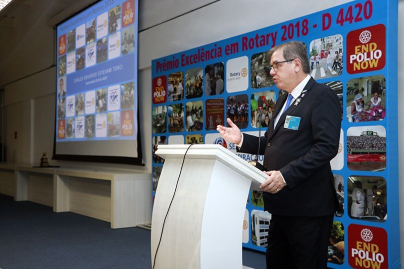 Torci enfatizou que a cerimônia de premiação serve como ferramenta de inspiração para que os projetos não deixem de acontecer dentro dos clubes de Rotary do Distrito 4420. Estamos numa noite festiva de reconhecimentos, homenagens e gratidão. É claro que este lado lúdico faz parte disso tudo, com a entrega de troféus, certificados, fotografias e aplausos. Temos que encantar, inspirar e liderar nossos clubes rotários desta forma. Entendemos que o grande líder corrige os rumos de sua equipe em particular, mas faz os elogios em público. Queremos liderar pelo encantamento. É neste momento que o PER se torna algo raro, quando o projeto realizado é mais importante que os troféus recebidos, afirmou o Governador.