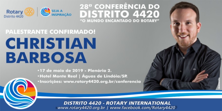 De 16 a 19 de maio de 2019, no Hotel Monte Real, em Águas de Lindóia/SP, vamos mergulhar no mundo encantado do Rotary, durante a 28ª Conferência do Distrito 4420 do Rotary International.
